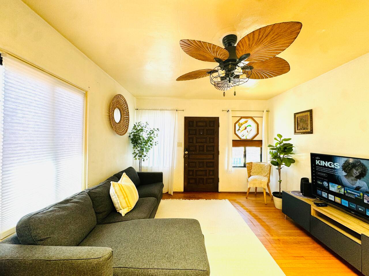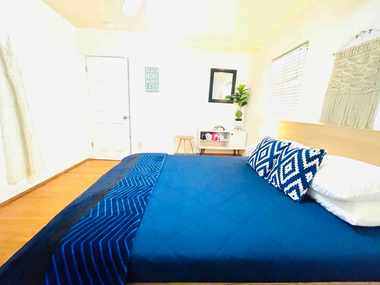 Welcome to your cozy 2-bedroom beach house with a spacious front yard—perfect for soaking up the San Diego sunshine! Out front, you'll find a grill and a fire pit for those chill evening hangouts. Extra propane tanks are stored in the garage for your convenience. Parking is super easy! Your designated spot is directly in front of the garage (parallel to it). Just a quick note—please don’t block the carport next to the garage, as that space belongs to the other unit. In the garage, you’ll also find a washer and dryer shared with the other unit. Detergent is included, and if you need extra towels during your stay, they’re located there as well. The garage is a shared community space, and we do store some furniture in there, so we kindly ask that you don’t move or touch those items. We hope you enjoy your stay and make the most of everything this fun little beach spot has to offer!