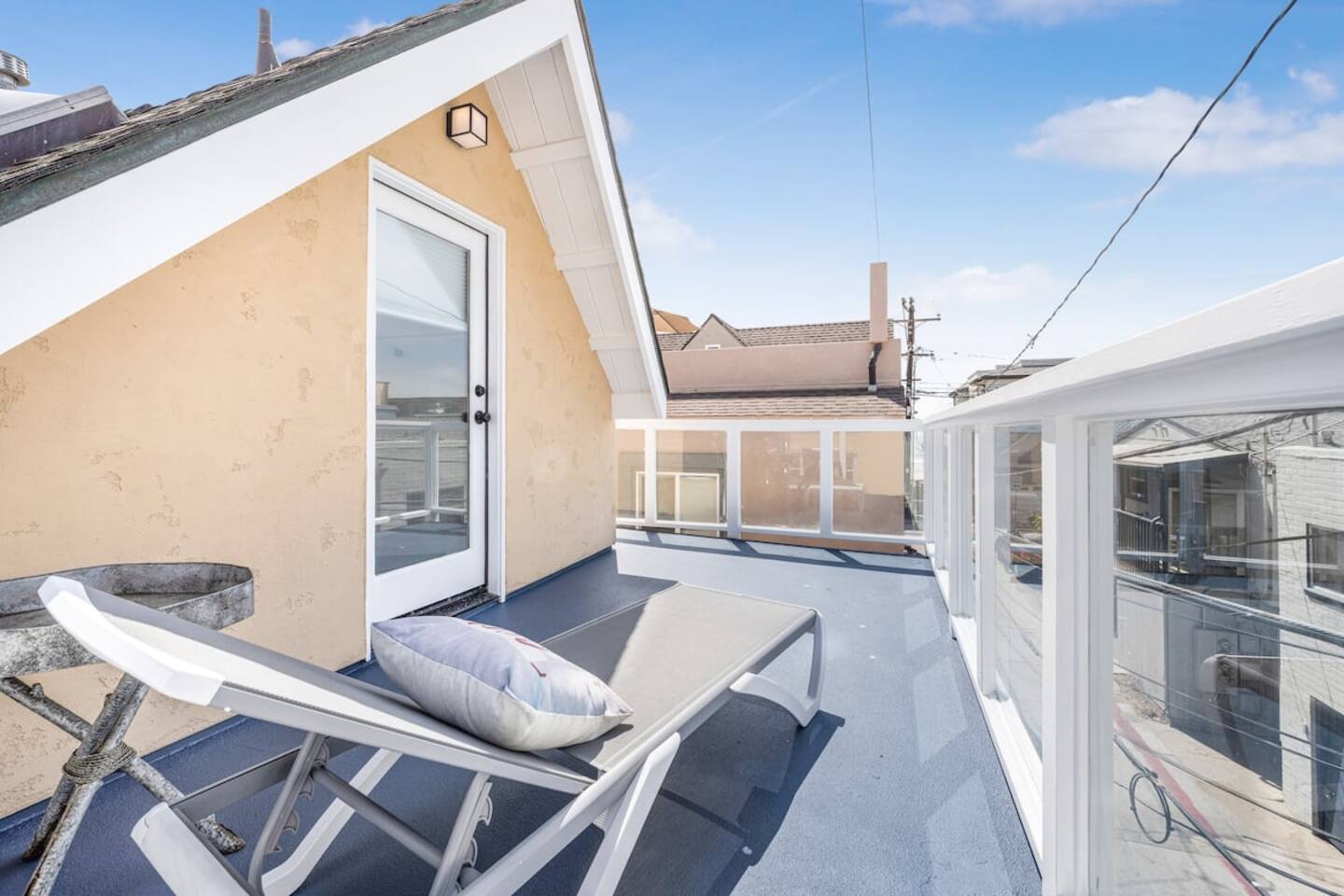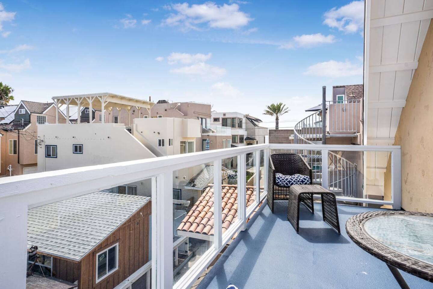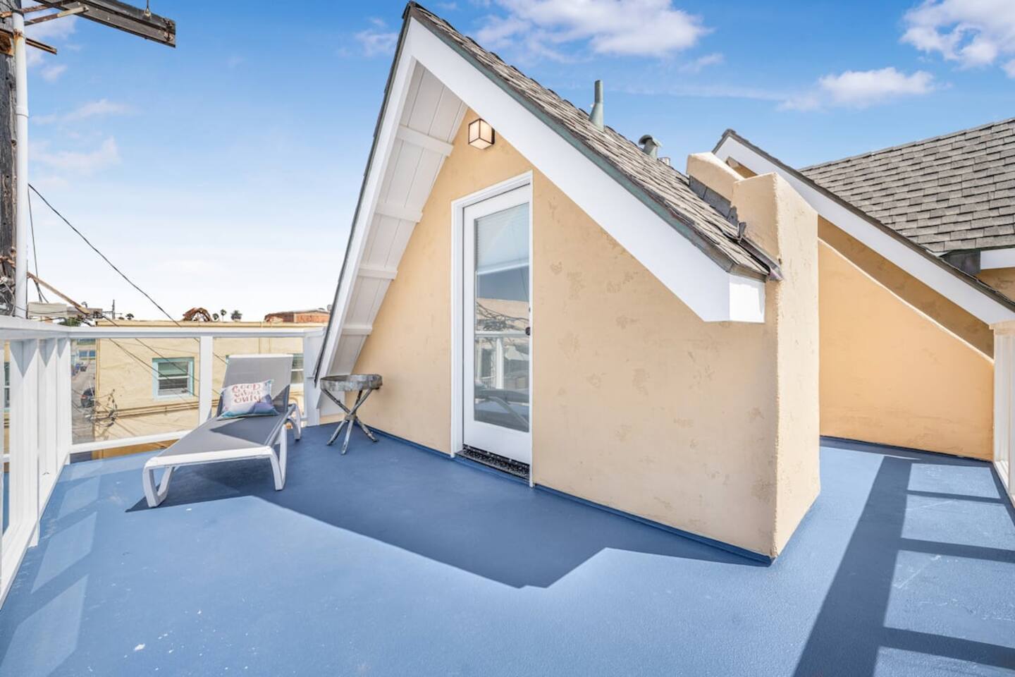 This bright and charming studio sits on the third level of a tri-level beach home, offering plenty of natural light and a relaxed coastal vibe. Enjoy two private decks—one on each side of the unit—perfect for soaking up the sun or kicking back after a beach day. The space includes a mini fridge, microwave, hot plate, coffee maker, dishes, and cookware—everything you need to prepare a simple meal. The bathroom is open to the studio, separated by a privacy curtain, and comes stocked with extra towels, body wash, and essentials to keep your stay comfortable. You’re just steps from the sand, with shared laundry available in the garage downstairs. It’s a really cute, convenient spot for a laid-back Mission Beach getaway.