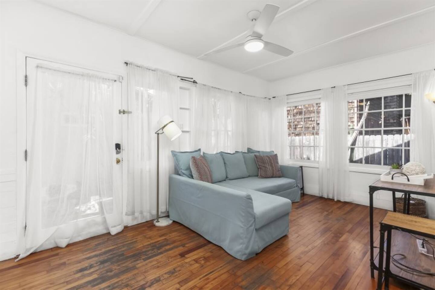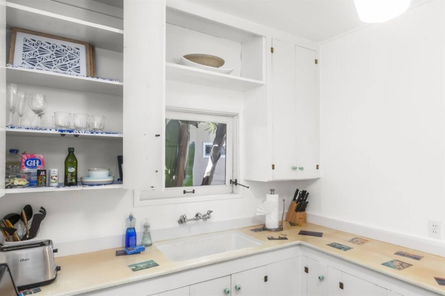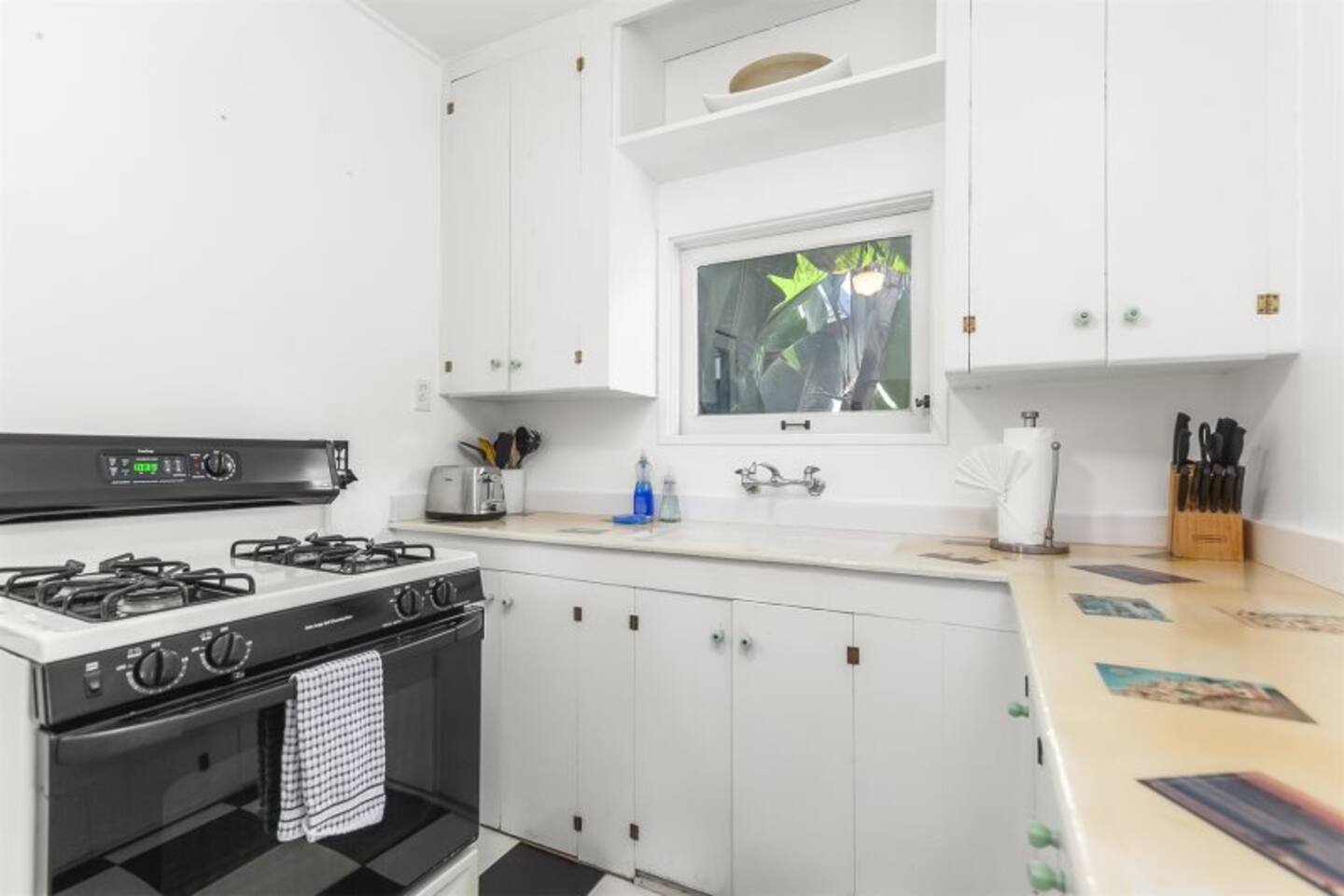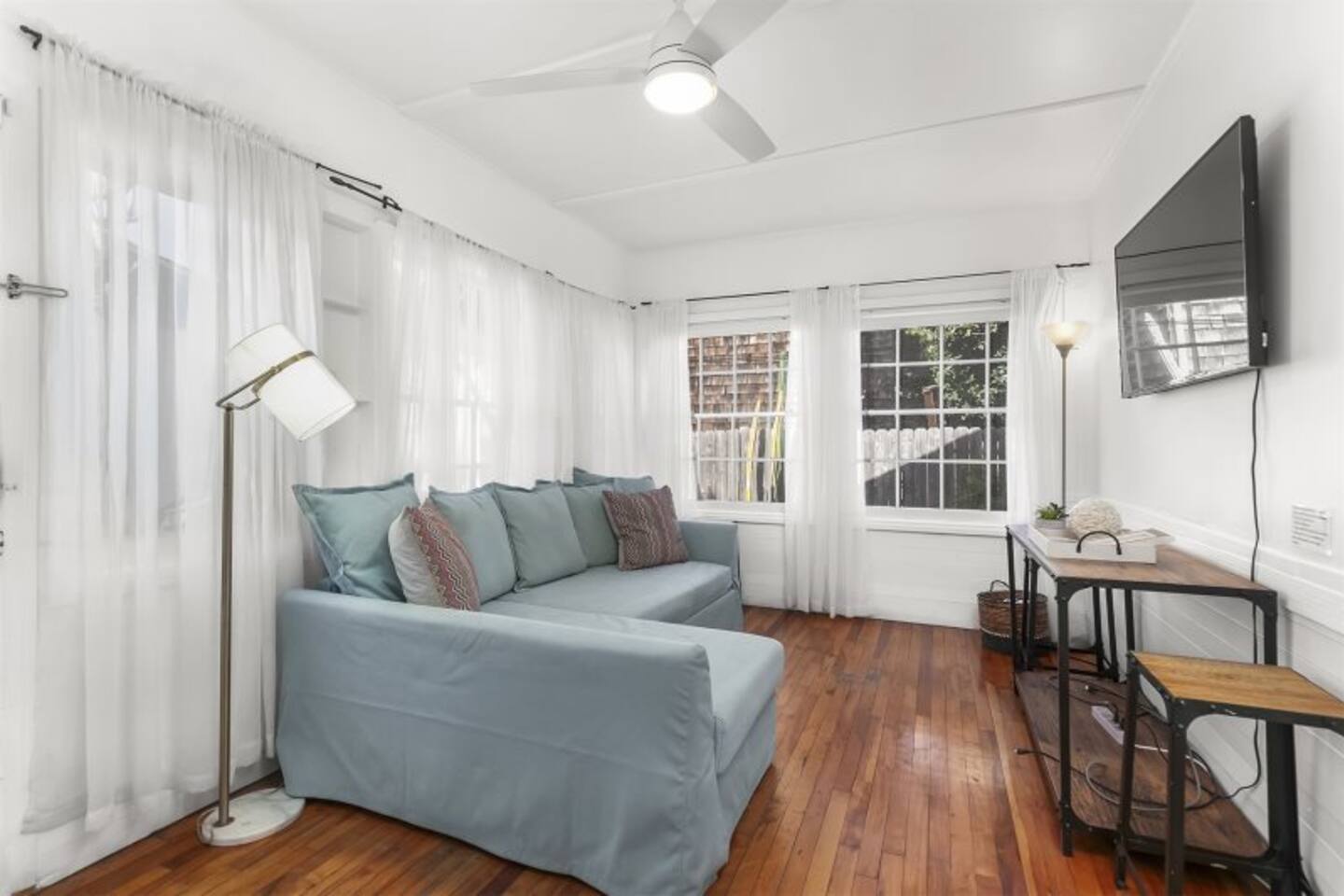 Queen bed plus a cozy IKEA pull-out sofa for extra comfort. • Pack ‘n Play and high chair available upon request. • All the travel essentials provided, including shampoo, conditioner, and body wash. • Kitchen stocked with coffee, tea, basic spices, oil, and more for your cooking needs. • Sparkling clean bathroom with a tiled shower and modern vanity. • Stylish, super clean space with chic furniture. • Keurig coffee machine with plenty of pods to fuel your mornings. • Large windows to let in the refreshing sea breeze and plenty of natural light.