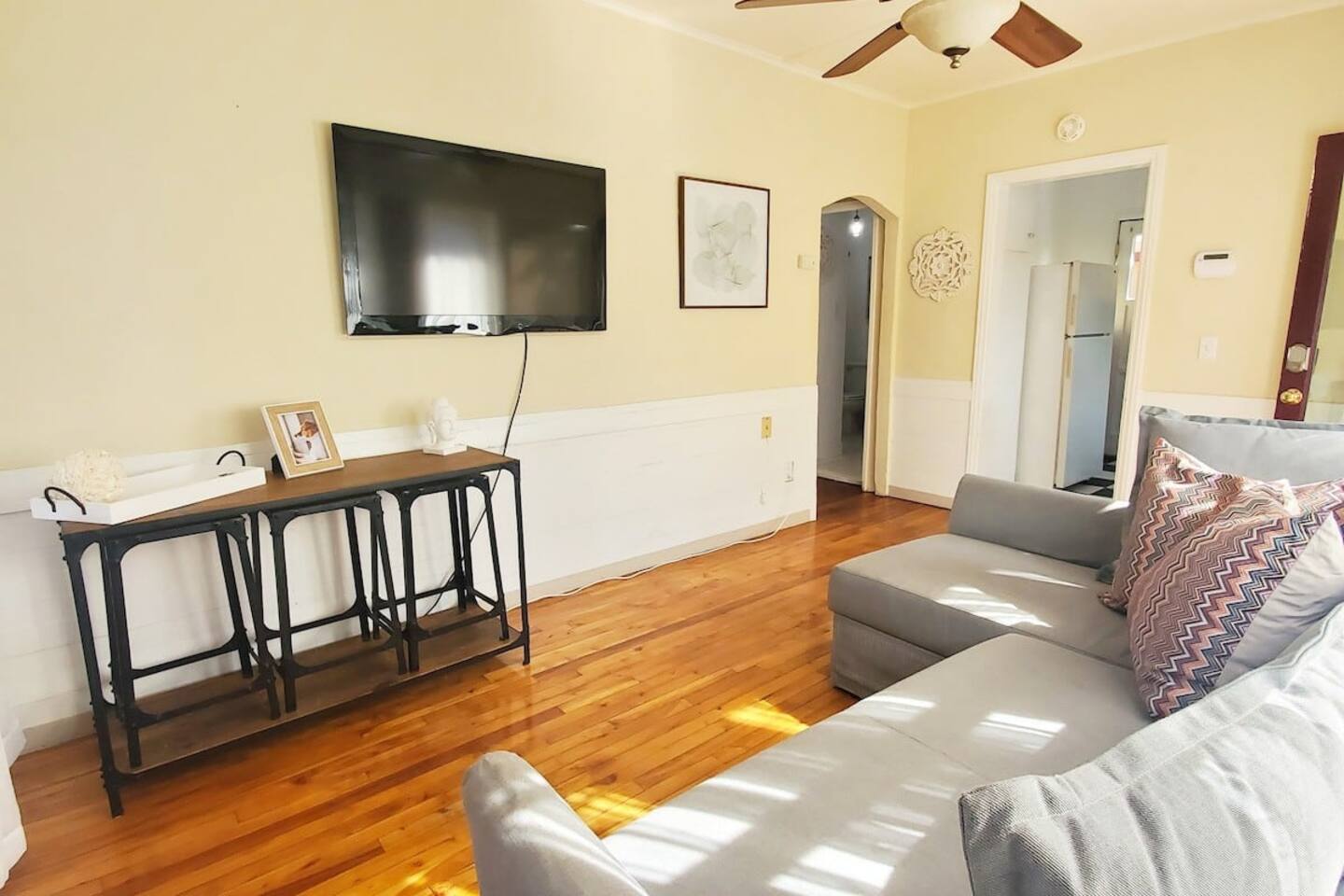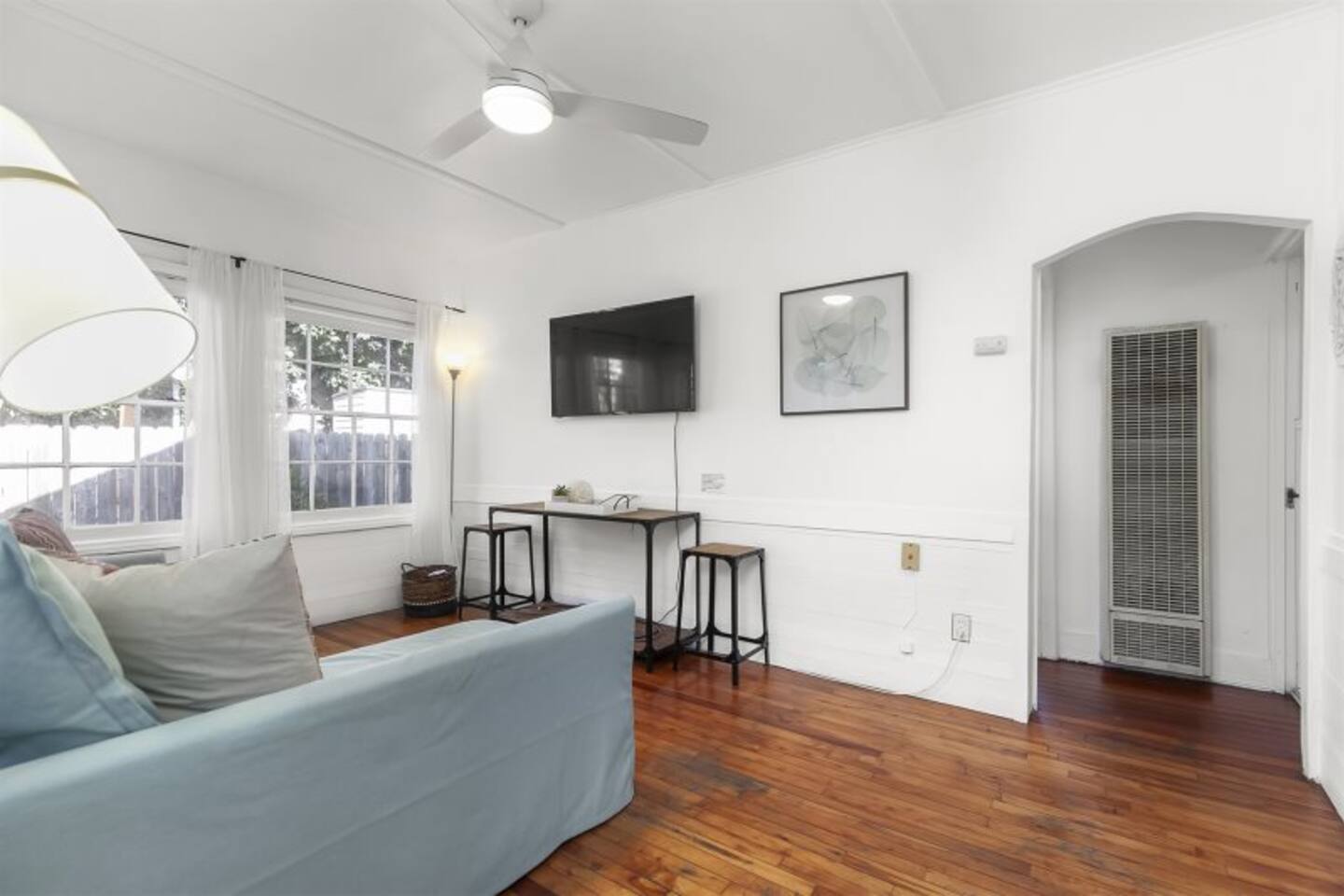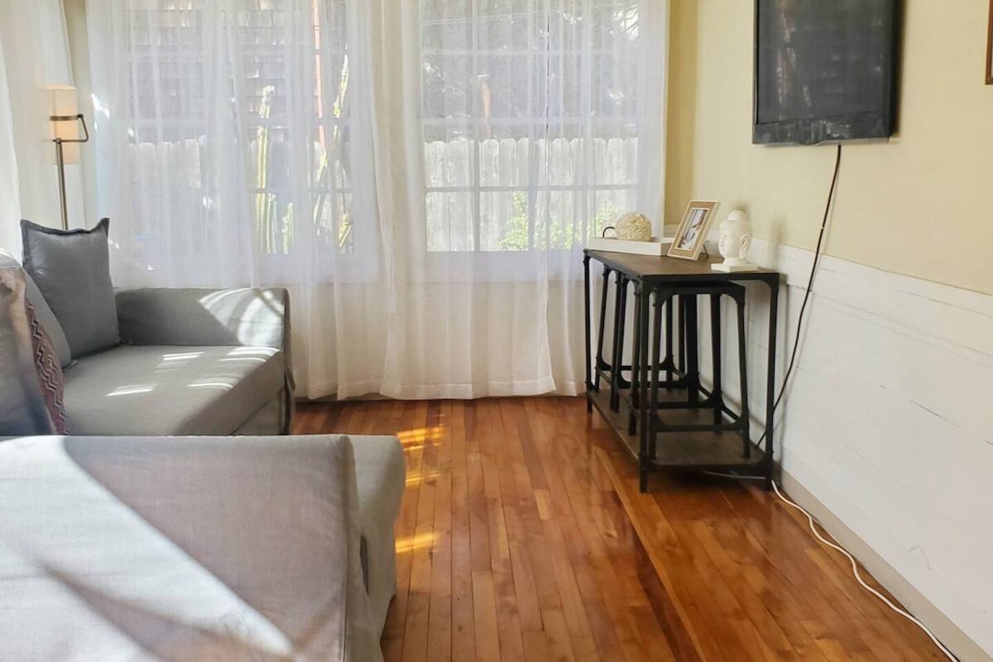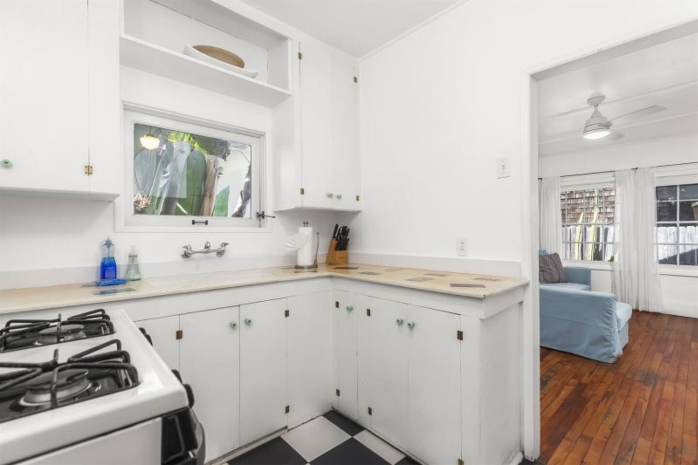 Queen bed plus a cozy IKEA pull-out sofa for extra comfort. • Pack ‘n Play and high chair available upon request. • All the travel essentials provided, including shampoo, conditioner, and body wash. • Kitchen stocked with coffee, tea, basic spices, oil, and more for your cooking needs. • Sparkling clean bathroom with a tiled shower and modern vanity. • Stylish, super clean space with chic furniture. • Keurig coffee machine with plenty of pods to fuel your mornings. • Large windows to let in the refreshing sea breeze and plenty of natural light.
